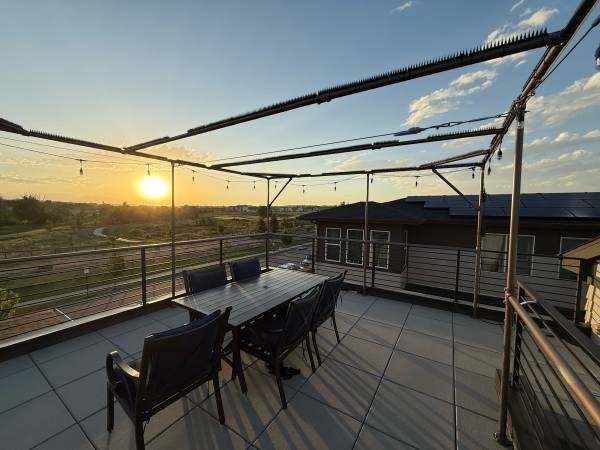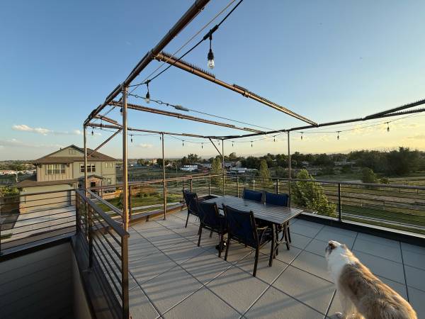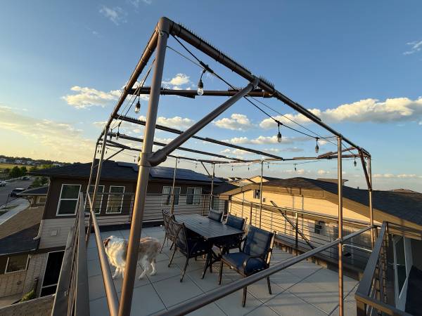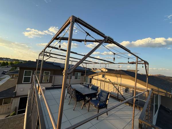 I have a great steel patio frame with an Aqua blue waterproof shade for sale. Place it wherever you want to place it. I put it up on our roof deck but we are redoing the top deck. All steel pipes and fittings are sprayed copper/brown. Dimensions are 14X16x8ft tall it’s pretty awesome and a great piece to hide the sun! Cost me 2,000.00 to build take it all for $750!