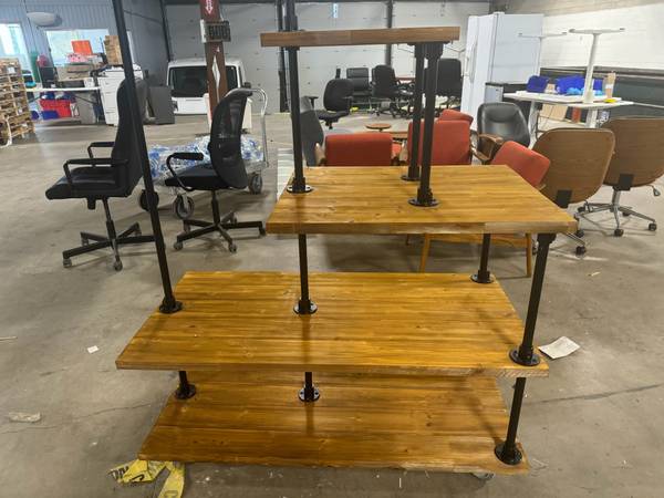Heavy duty real wood and steel pipe rack shelves Used for retail store shop business market New still in the box $150 Items are in storage which means who n by appointment Please Include your Phone...