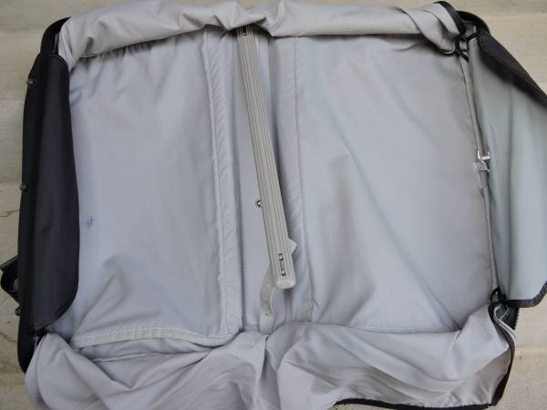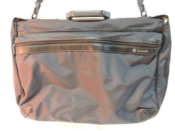 Samsonite Black Carry On Hang up Shoulder Bag Suitcase. Very good condition and functions properly. Black exterior and gray interior. Expandable. Adjustable shoulder strap. All zippers work. Two (2) exterior pockets with zippers. Approximate measurements of bag empty are : 21" x 14" x 4". $30 cash only.
