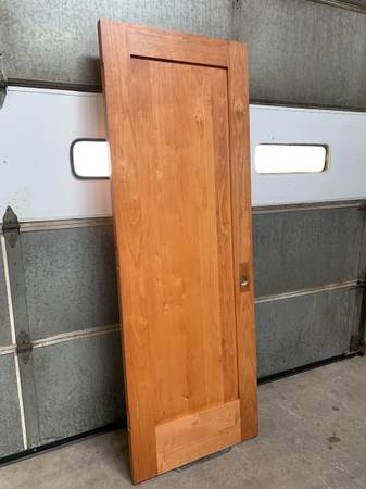This is a beautifully crafted solid cherry wood door with a natural finish, featuring a single recessed panel design. It is pre-bored for a standard handle and ready for installation. The door has a smooth, warm-toned surface that highlights the cherry wood grain. Ideal for interior use in homes, offices, or remodel projects where quality wood doors are desired.