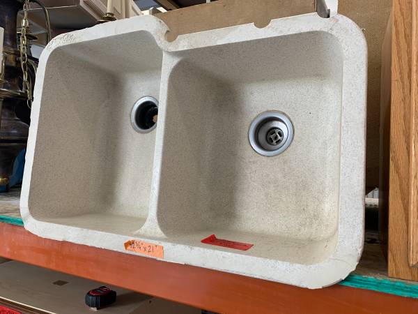Details Condition Used - Good Swanstone undermount double bowl kitchen sink in "Prairie." Solid Surface 33" L x 21.25" H x 8.25" D Reference Link:...