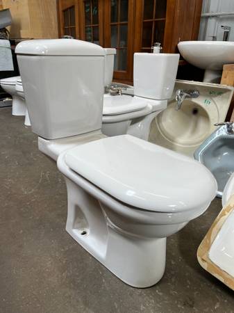 Elegant Villeroy&Boch one-piece toilet featuring a sleek, modern European design. Crafted from high-quality vitreous china, this unit combines a compact footprint with clean, curved lines for a contemporary look. Dual-flush top button for water efficiency.