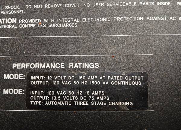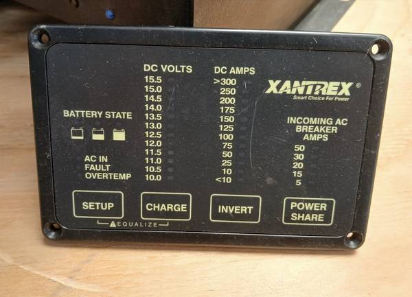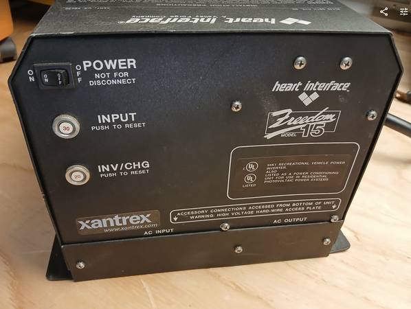 Xantrex Freedom 1500 Inverter / Charger with Shore Power Transfer / Shore Power / Charge Sharing. Includes Control panel and 2 - 6 foot 2/0 cables for +/-. Unit ran to spec