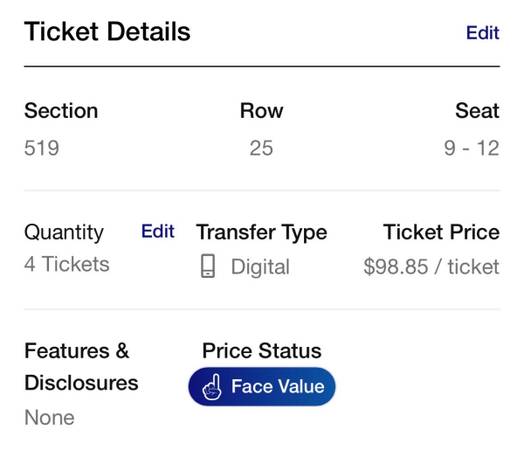 Purchased tickets during presale for Aug 13th. I am not able to go and would like to sell. Selling for what I paid during presale. Section 519 Row 25 Seats 9-12. Tickets are listed on Cash or Trade App at face value to avoid scams and insure a fair transaction. Please go to link below.
