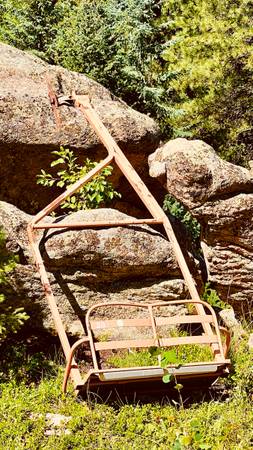 Own an authentic collectible ski lift chair. Chair 30 is a rare triangle style double chair. All metal construction, including the seat. The chair can be hung as a swing or mounted on a stand for a unique piece of ski furniture. Last 2 photos show example of hanging chair and fixed chair modifications that one could do.