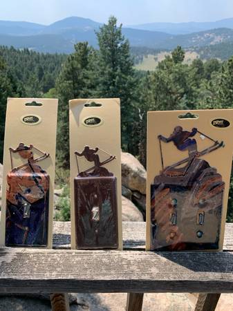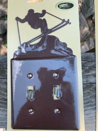Lazart metal designer light switch covers. NEW in protective plastic packaging. Great ski decor for yourself or for gifts. $12 single switch $15 double switch