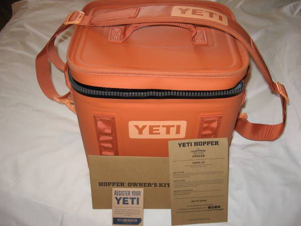 New, never used Yeti Hopper 12 soft cooler Special color coral, orange or peach Can also be used to keep food hot Selling because I have another one $200 obo Cash only please Save $50 plus the big T...