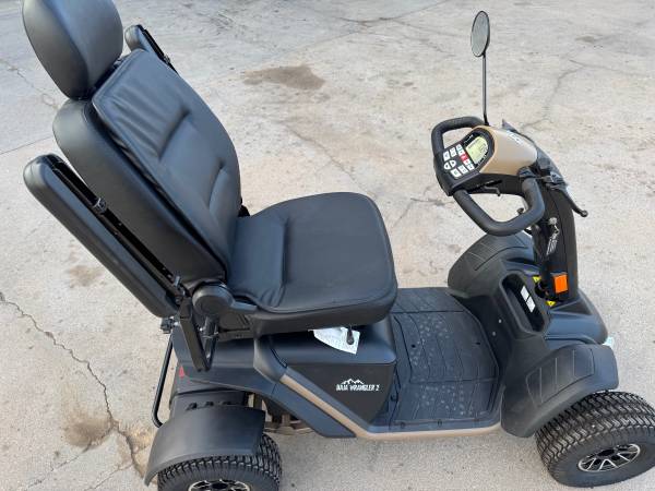 Only 3 miles on this! Knobs still on the tires. Health changed quickly and this couldn’t be used. These list for $5730 new. Top of the line mobility scooter. Large seat up to 350lb person. Only difference between this and a new one is the price! Has disc brakes and suspension like an atv. One of the few mobility scooters that are fully outdoor capable. Has slow speed mode for indoor/loading and fast mode for outdoors. Unlike most others this drives smooth off-road. Charger, paperwork and extra key included. Don’t need help selling. Accept cash as payment.