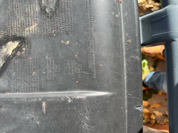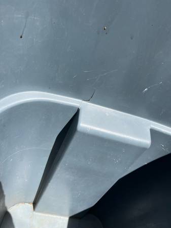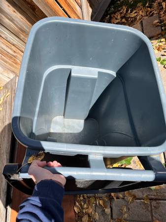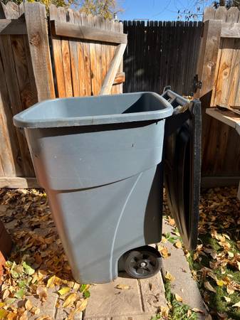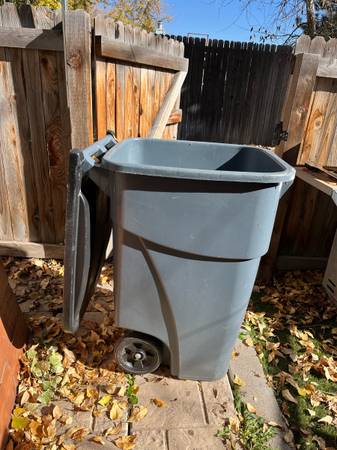 50 gallon outdoor trash can Has a small crack in the front (see pictures) but that’s just cosmetic and can be fixed and covered by some duct tape We switched to a new larger trash can a couple...