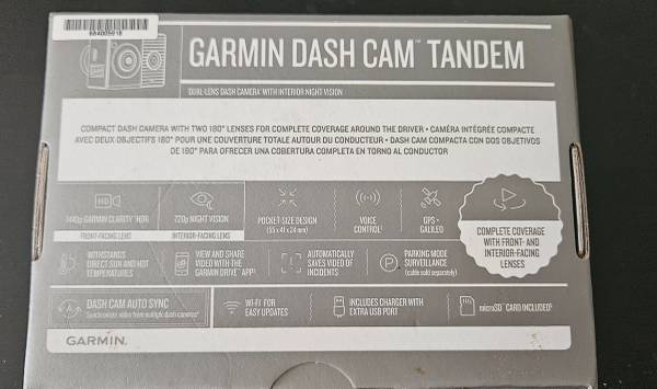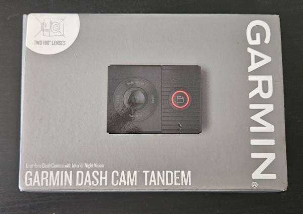 Garmin dash cam tandem. Never used. (Sells for $300 new.)