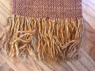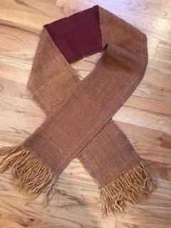 Handwoven Scarf Length (not including fringe): 7 Feet Width: 7 1/2 Inches Colors: Maroon, Brown, Orange, Yellow $10.00 CASH ONLY NO SHIPPING