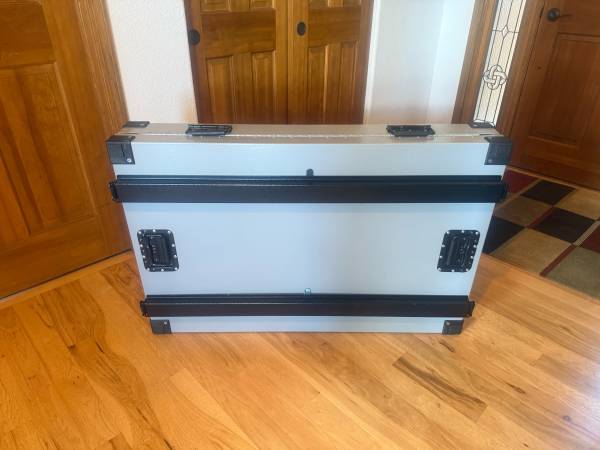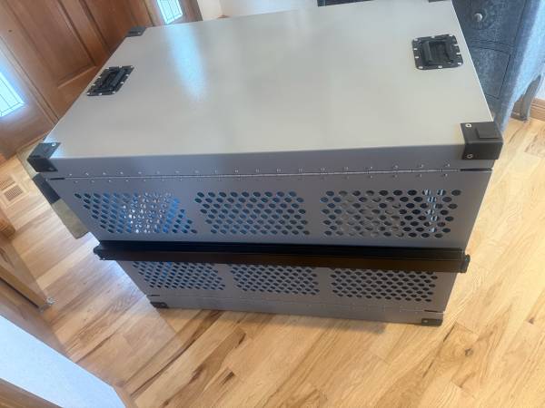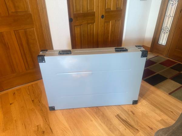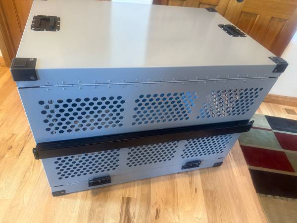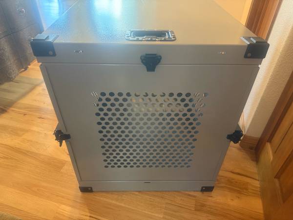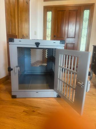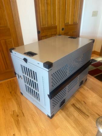 Aluminum collapsible dog crate for tall dogs. Airline approved. We used it to travel with our collie in a minivan. Very safe in a vehicle and easy to fold up to move when needed. Comes with a custom...