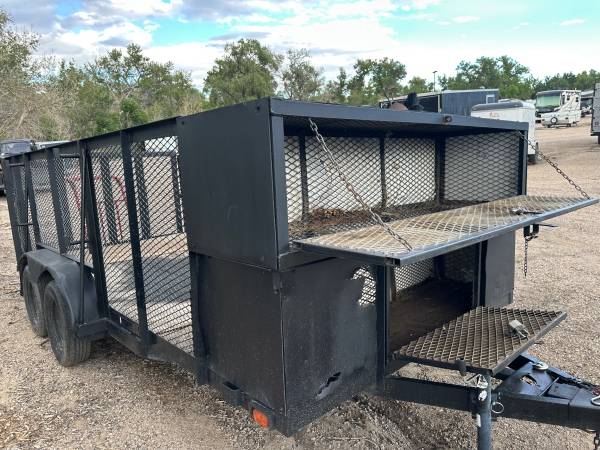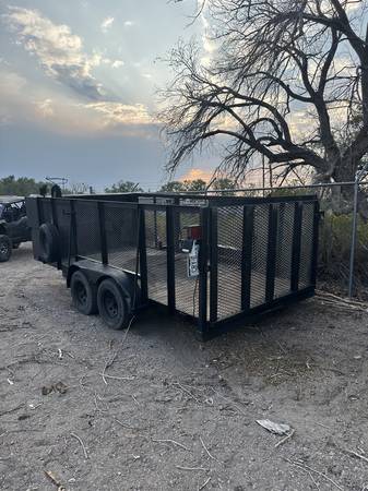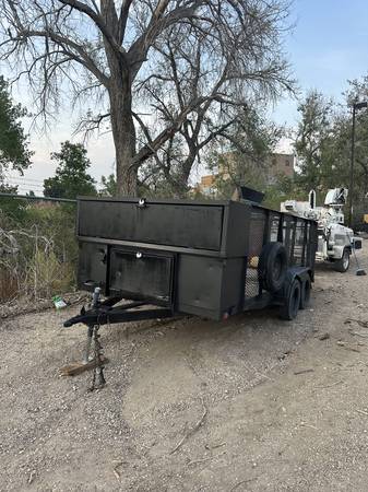 Good landscape or side-by-side trailer for sale. It has 2 storage areas that are 2'x2'x7' at the front of the trailer with locks. You can lock and waterproof.
