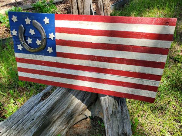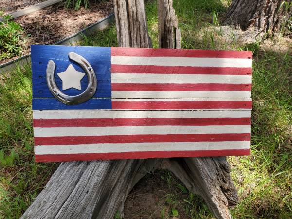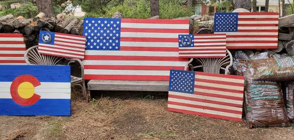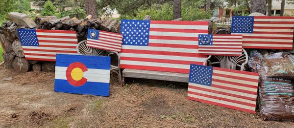 These American flags and Colorado flags were made from up cycled pallets. Right now we have 4 sizes from small to large. The size and prices is as follows: