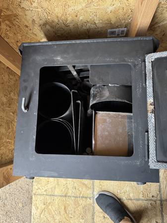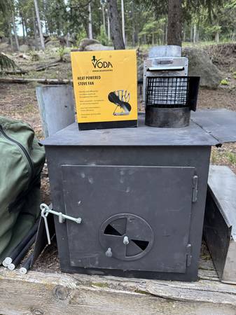 Wood-burning tent stove (Wall Tent Shop) & accessories