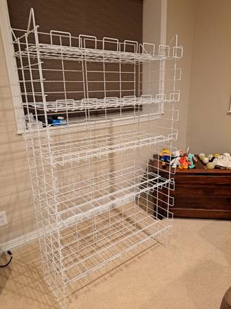 Offering a metal wire rack shelving unit. 5 fully adjustable shelves. Unit fully collapses to transport or store. Great condition. 36" wide x 64" high x 19" deep. Cash only please.