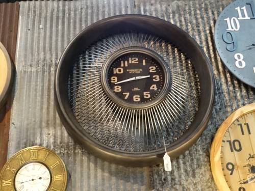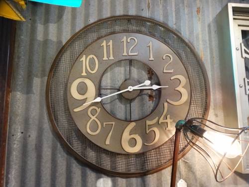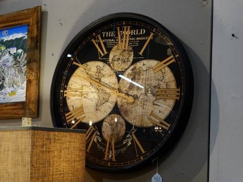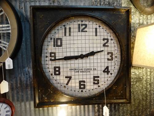 Come into the store to see our variety of Clocks: Industrial Clock, Rustic Clock, Metal Clock, Table Clock, Wall Clock, World Map Clock, Double Sided Clock, Hanging Clock, Large Clock, Round Clock, Oval Clock, Large Numbers Clock, Roman Numeral Clock, Gear Clock, Analog Clock, Table Clock, XL Clock, Backlit Clock