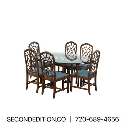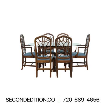 VINTAGE HICKORY CHAIR GLASS DINING SET