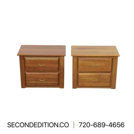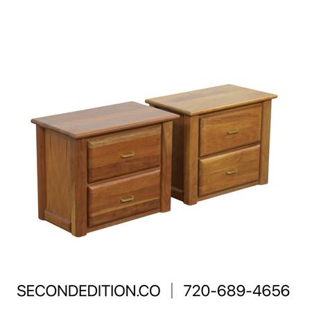 VINTAGE WOODLEY'S WOODEN 2-DRAWER NIGHTSTANDS