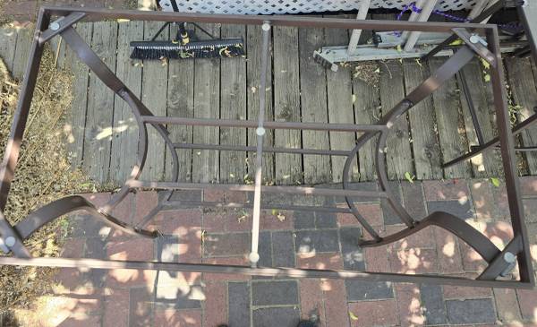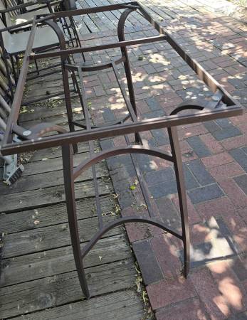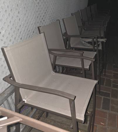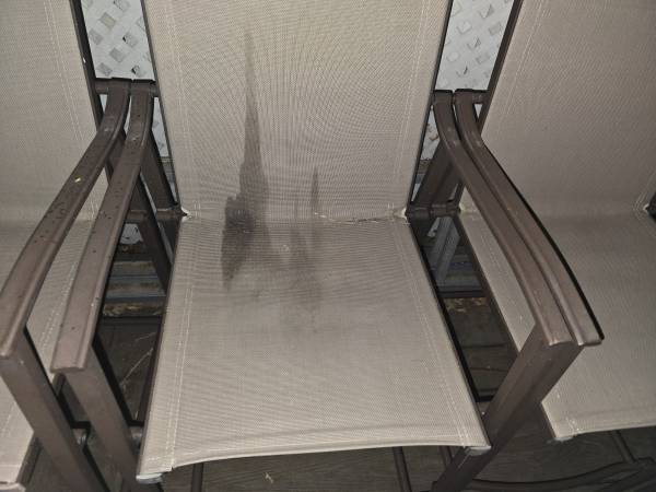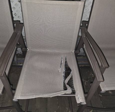 **Chairs note #2: One is legitimately torn, so the fabric needs to be replaced (or you can just choose not to take the torn one). To clarify, there are eight total chair frames, seven usable chairs (excluding the torn one) the day you pick it up.