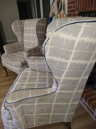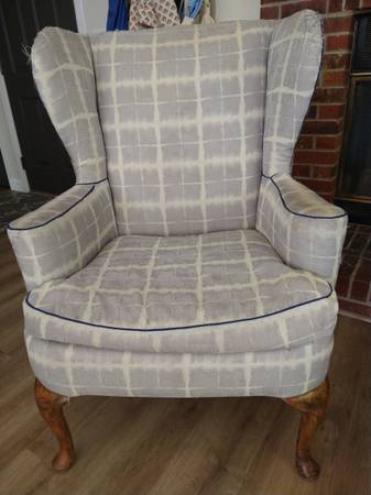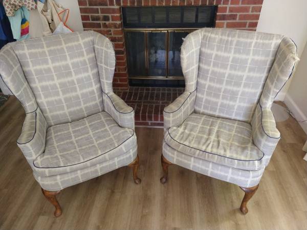 Pair of well-made wingback chairs with Queen Anne legs. Need to be reupholstered, but the construction is solid. $100 OBO