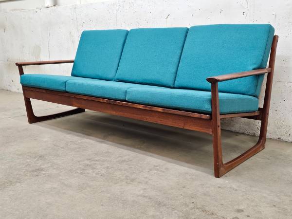 Designed by Hans Olsen and made in Denmark, this sofa would fit well into just about any interior design style.