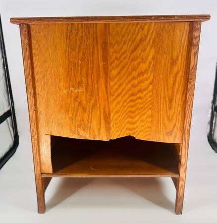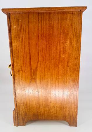 Vintage Powell Furniture Oak Wood Ice Box Nightstand Cabinet Chest End Table / Side Table Original Finish Some scratching on top and back was cut out for cables.