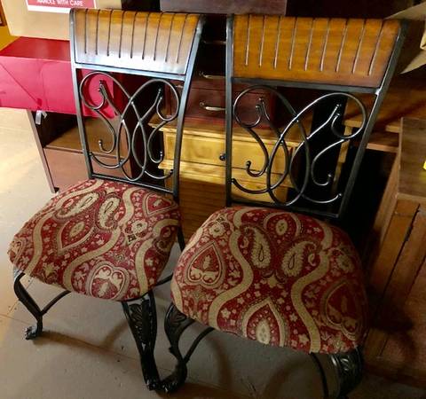 Also available some other great sets. The modern white and chrome set is brand new, just out of the box, very light grey/ white synthetic leather and resistant chrome chairs - very comfortable - $195 each. Reduced now to $75 each.