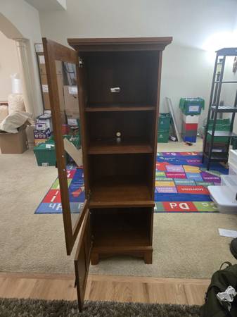 Great cabinets. We had DVDs, electronics and other miscellaneous stored in it. Great storage unit. Width: 21.75" Depth: 19.5" Height: 61.5"
