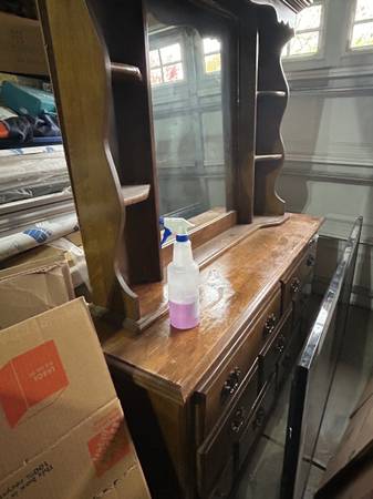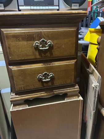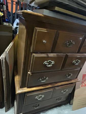 Older bedrooms that needs love includes two nightstands, dresser, chest of drawers, mirror, headboard, and bedframe. Been sitting in storage everything but the mattress. Fits a queen mattress