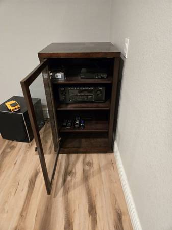 In great condition. Electronics and Media NOT included. Perfect for living room and movie room. Width: 24" Depth: 22" Height: 42"