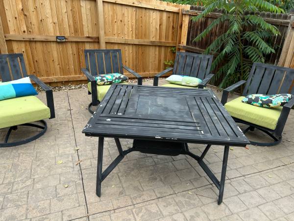 Patio furniture, table, four chairs and cushions - $100 cash only