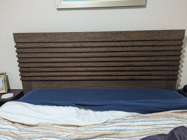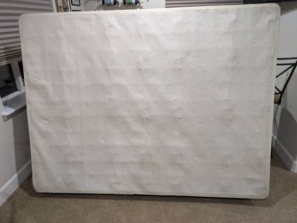 Queen headboard, great condition barely used. Also includes basic metal queen frame and box spring. Headboard is newer than frame/box spring. No top sleeping mattress.