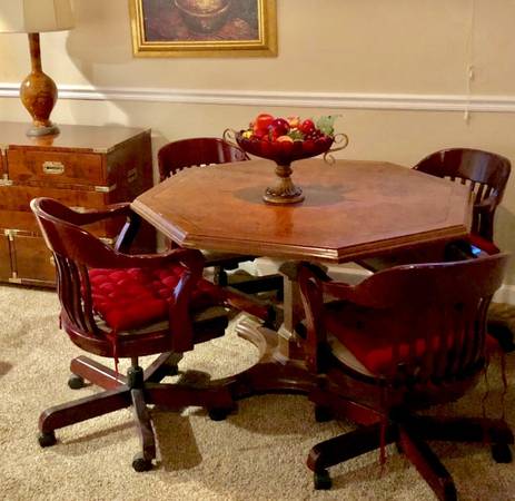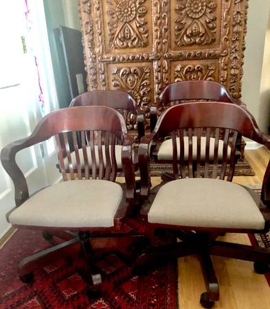 Awesome set of bankers mahogany JASPER chairs - super practical and heavy, sturdy for a game table or desk. These are original banker chairs which usually cost around $850 and up. Ours are beautiful and in excellent condition!