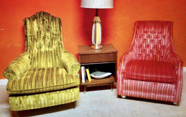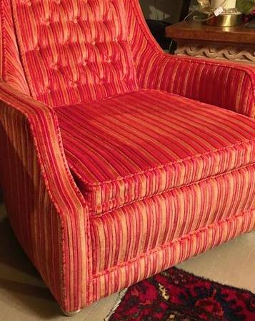 Pair of mid century orange vinyl chairs. Asking $395 each.