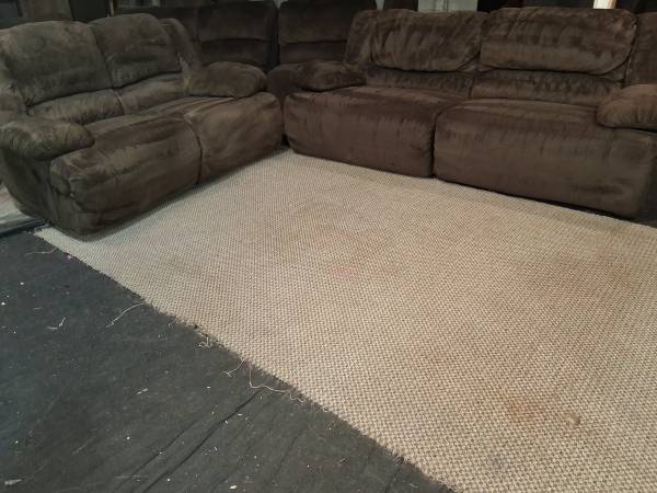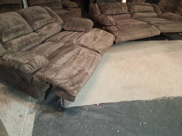 I have a beautiful chocolate brown microsued couch and loveseat 4 Reclainers in excellent working conditions smoke and pet free Very clean we do a professional shampoo and steam clean No damages I can help to set up inside FREE DELIVERY available if needed