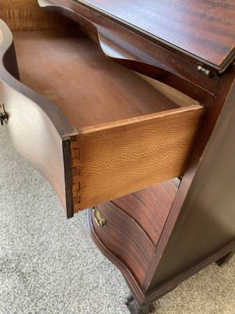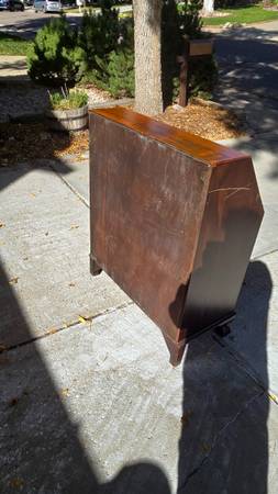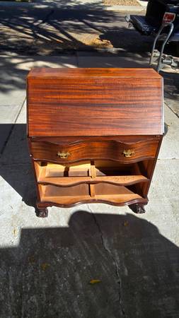 I saw this as a wonderful refinishing project, but decided my interest was more modern. The feet are easily removable allowing something new. The cubbies can be removed. Perhaps a spot for a laptop - with outlets / usb power in the back. Perhaps partial cubbies or new shelves? Stained / Painted. Lots of possibilities.
