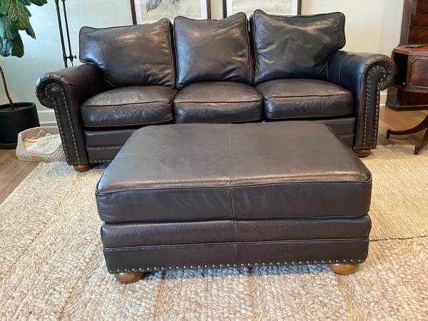 LEATHER Couch, Chair & 1/2, Jumbo Ottoman - furniture - by owner -...