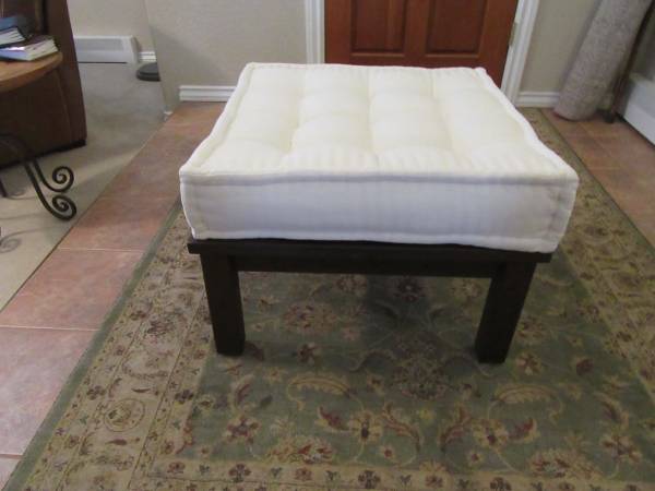 We have retired and we are thinning down on household stuff. So up for sale is a Pottery Barn meditation bench that we never used. We got a swing for our small screened in porch and there wasn't room for this table. It is 13 inches high and 27.5 inches square. The cushion adds about another 5 to 6 inches of height. suitable for sitting on. I wasn't able to find this exact table in the Pottery Barn catalog, and it's been a few years since we bought it, but a similar table with slightly longer legs lists for $269. A similar outdoor cushion lists for $89. So we're asking for about half of new. If interested please respond to this posting and I'll get you contact information. I'm near 120th and Sheridan. Cash and local only please. Thanks for looking.