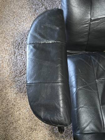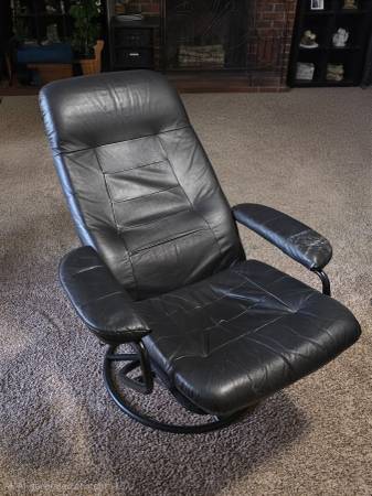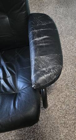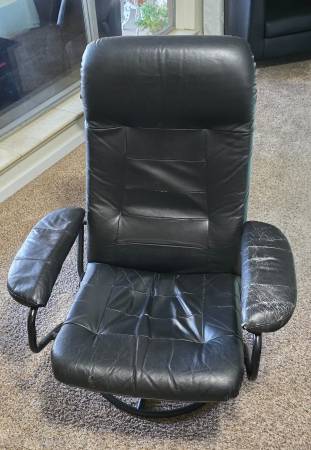 FREE: Black, reclining chair and ottoman (over 10 years old). Armrests have wear marks. No help is available for delivery or loading. Items are on the driveway. First come, first served. 125 Garnet...