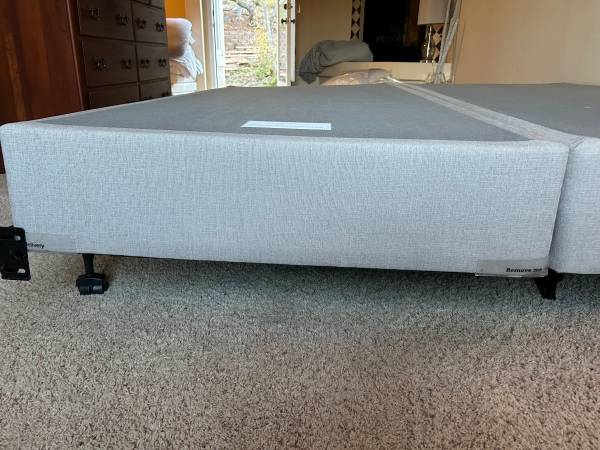 *STUNNING LIGHT GRAY UPHOLSTERED *LUXE DESIGN* Tempur-Pedic® STANDARD KING CLOUD PROFILE Foundation by Tempur-Pedic minimizes motion transfer Has Factory mounted corner protectors.