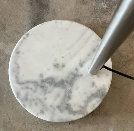 Sleek arched floor lamp with a heavy solid marble base for stability