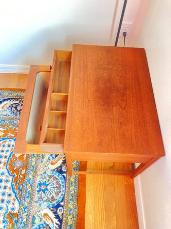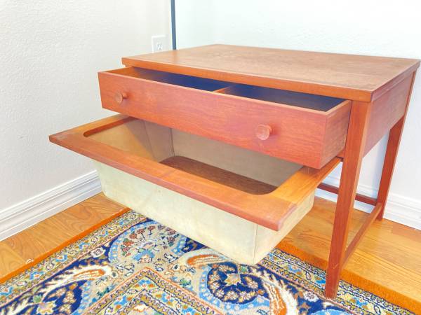 Rare Danish Mid Century Modern "Sewing" Table with Suede Drawer