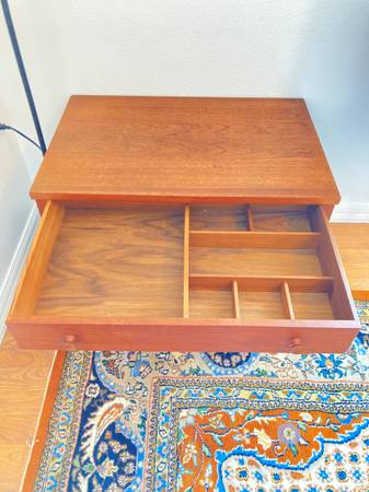 Search words: Table, suede, leather, end table, side table, teak, mid century modern, Mobler, Scandinavian, vintage, Danish, MCM, Mid-Century Modern, designer, unique, high end, rare, collectible, antique, retro, Eames, Herman Miller, Knoll, Hans Wegner, Eero Saarinen, Adrian Pearsall, Arne Jacobsen, Finn Juhl, Jens Risom, Warren Platner, shabby chic, boho, design within reach, dwr, West Elm, Broyhill, Drexel, Crate and Barrel, Restoration Hardware, living room, furniture