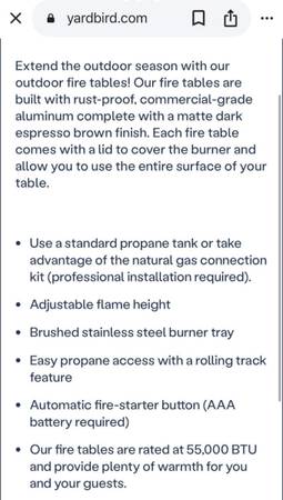 Comparable in quality and style to Restoration Hardware, Frontgate, Brown Jordan, and Hestan fire tables, this Built for durability and elegance, it offers powerful heat output, sleek design, and commercial-grade materials — all the hallmarks of high-end patio furniture.