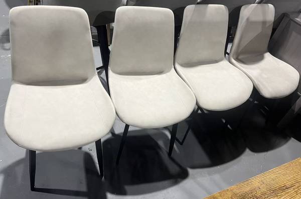 🥨 4Pcs Dining Chairs, Modern PU Leather Dining Room Chair with Sturdy Metal Legs, Upholstered Seat Dinner Chairs Accent Side Chairs for Indoor Kitchen Living Room, Light Grey
