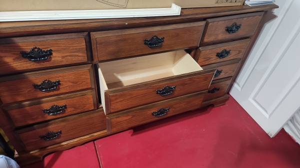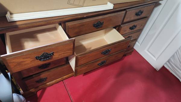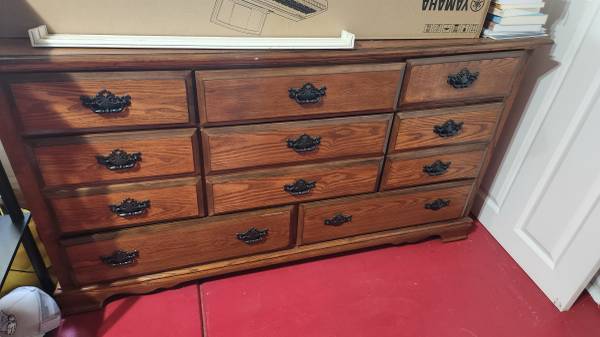 Wooden chest of drawers, used couple of drawers are a little wobbly but they do close. Please pick up yourself with an appropriate size minivan. I can help bringing it up from the basement