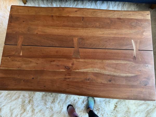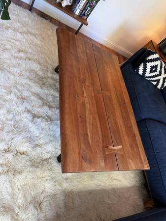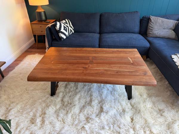 Beautiful and sturdy live edge coffee table. Purchased from Crate and Barrel. https://www.crateandbarrel.com/yukon-warm-acacia-live-edge-solid-wood-54-rectangular-coffee-table/s335471 Cash only, you...
