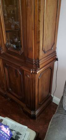 Solid wood everywhere. Two pieces. If you like high end beautiful furniture this would make a nice addition to your home.