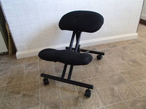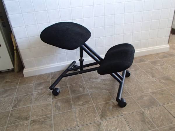 Ergonomic kneeling chair with black upholstered elements. Adjustable height, 16" wide, and 26" long. Cash or venmo.